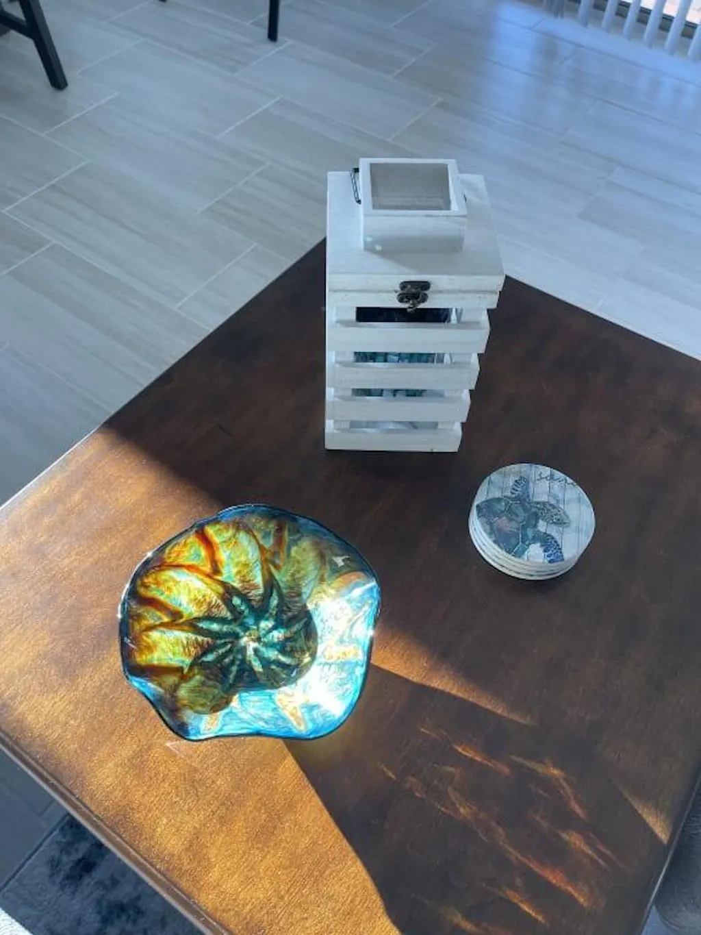 Specializing in Venetian-style art glass, The Glass Forge team begins each piece by gathering clear, molten glass from the furnace on a long, hollow rod. Next, they apply various decorations and colors to this clear glass. Then, the glass is blown like a balloon to achieve the desired shape, and finally, the top and bottom of the piece are finished.