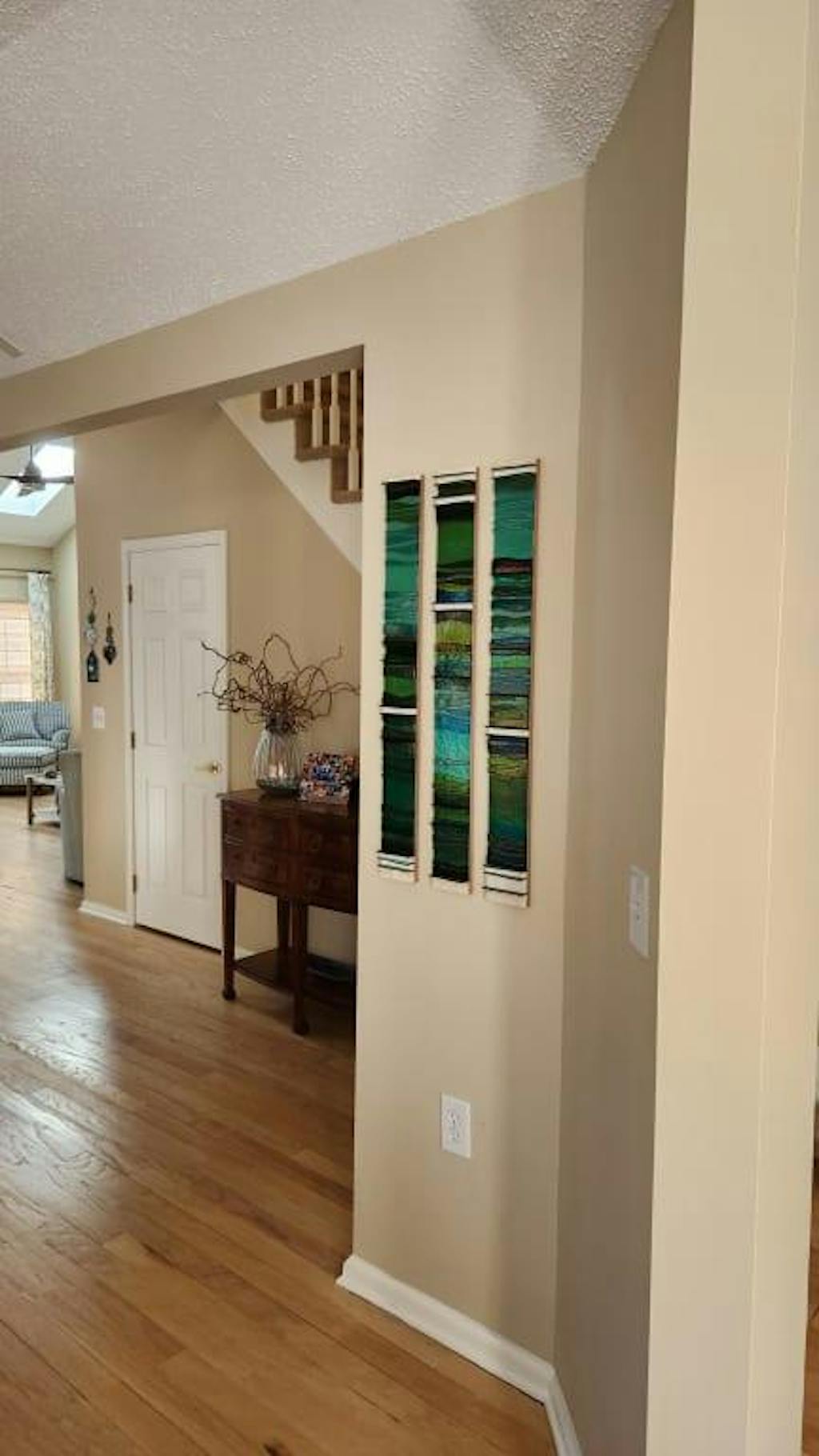 Venezuelan glass artist Alicia Kelemen brings out the desired optic effects, forms, textures and a wide array of structures and color in her contemporary multi-media layered collaged mosaic murals, decorative art for the wall, mirrors, home accent floral vases and Judaic Art influenced by her colorful and exotic tropical towery Tepees landscapes and majestic natural wonders cascades like "Angel Falls". Her abstract designs depict the deep tones of jungles and transparent beaches.