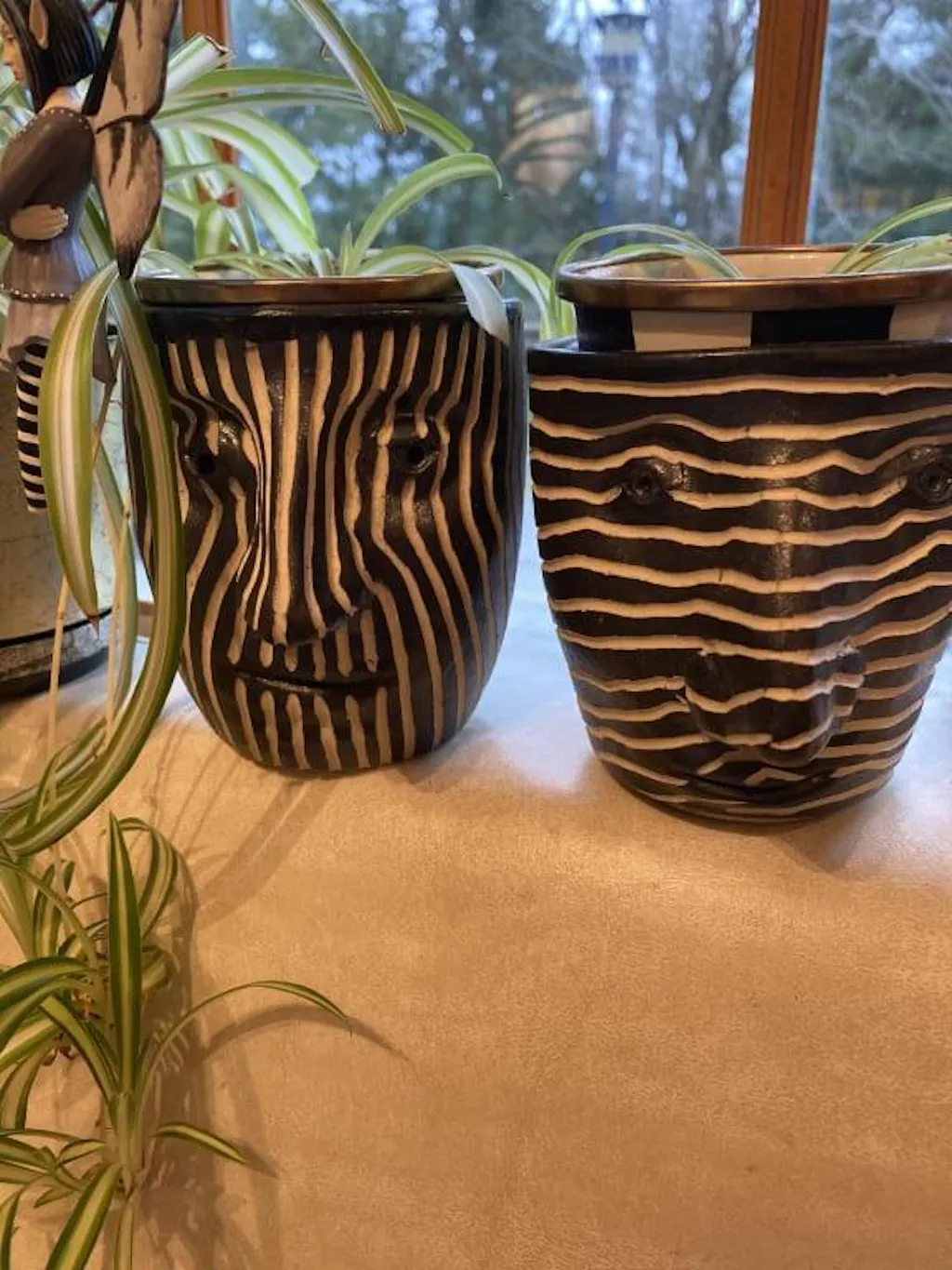 Larry Halvorsen works with stoneware clay, constructing his pieces through a combination of hand-building techniques such as coiling, press-and-slump molding, and slab building. He coats the pieces with black slip, and then, using the ancient technique of sgraffito, he carves through the slip, revealing the natural clay beneath. His pieces are fired once to cone 10 (2300 degrees) in a natural gas kiln.
