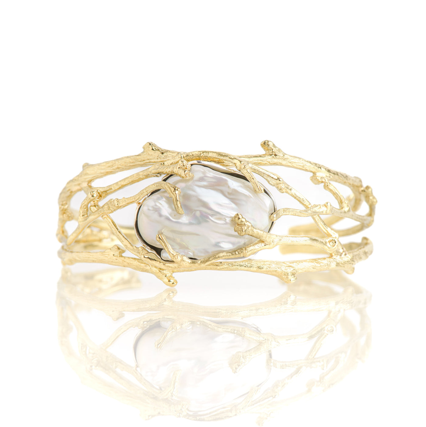 A jewelry designer and goldsmith for over 40 years, Micky’s artistic inspiration comes from her love of nature, her appreciation of organic materials, and the beauty of the Finger Lakes region she calls home. Birch twigs from her yard, “lucky stones” from the shores of Cayuga Lake, and gorgeous waterfalls recreated in gems. These collections continue to grow and amaze.
